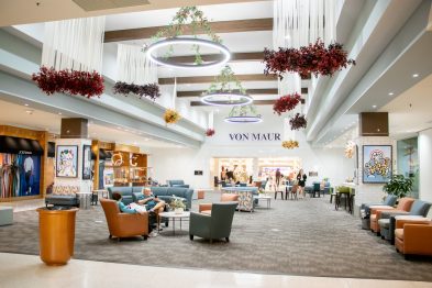 Our newly renovated Von Maur Court is a must-see! With cozy seating everywhere and beautiful stars hanging above, thanks to the talented team at Love Always Floral, it’s the perfect place to relax and enjoy the atmosphere. There’s so much to explore in Von Maur Court!