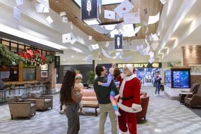 Aquarium Court is full of holiday magic with beautiful giant Santa nice lists and Christmas wishes overhead! Thanks to Love Always Floral for bringing this lovely display to life. Come by, relax, and enjoy the holiday season!